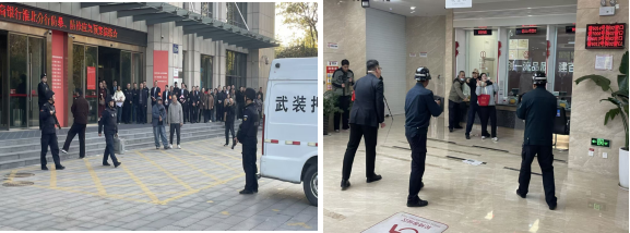 本次演練聚焦實戰(zhàn)化要求,設(shè)置兩大高風(fēng)險場景,場景一:武裝押運車組遭遇“歹徒”暴力搶劫;場景二:營業(yè)網(wǎng)點遭遇“歹徒挾持人質(zhì)”搶劫,全流程模擬突發(fā)事件處置。